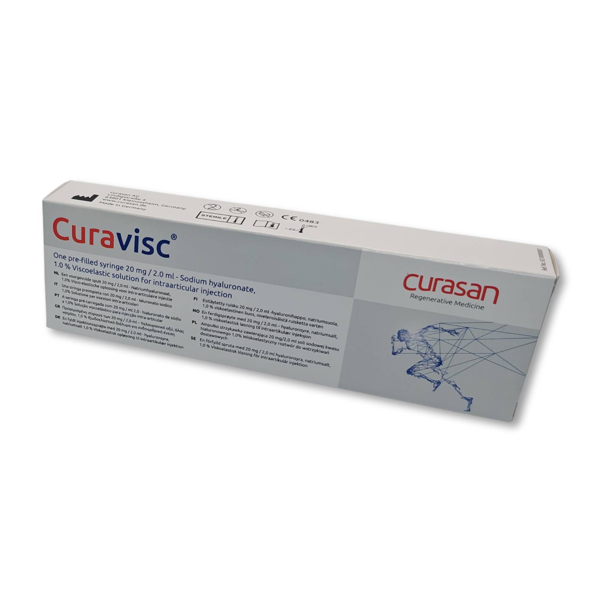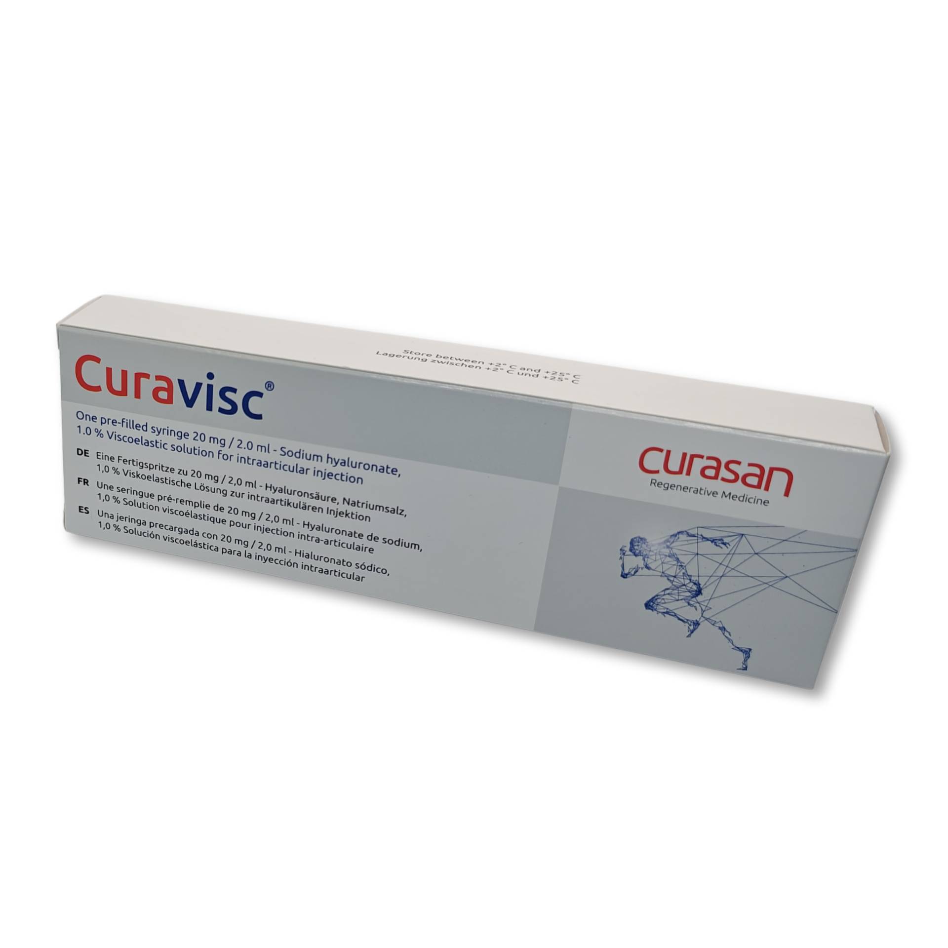1 gotowa do użytku strzykawka zawiera 2 ml roztworu do wstrzyknięć (Curavisc®), czyli 20 mg kwasu hialuronowego (pozyskiwanego w drodze fermentacji) oraz chlorek sodu, jednowodorowy fosforan sodu, dwuwodorowy fosforan sodu i wodę odpowiedniej jakości do zastrzyków.